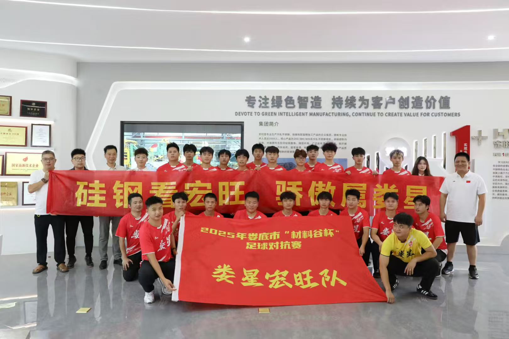 优异成绩的取得,离不开娄星区委区政府的坚强领导,相关主管部门的精心组织,更离不开教练员、运动员和工作人员的辛勤付出。赛事期间,队员们用汗水和激情谱写了一曲钢铁工人的胜利赞歌。这一荣誉不仅是对队员们顽强拼搏的肯定,更是宏旺“实现共同梦想”文化的生动体现。湖南宏旺工友啦啦队与众多群众球迷一起到场为“娄星宏旺”队加油助威,“硅钢看宏旺,骄傲属娄星”一句句口号,喊出的是宏旺智造的底气。
